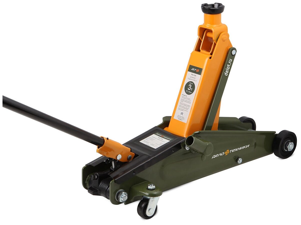 - Домкрат Дело Техники подкатной двухплунжерный 3,5 тонны. Профессиональная серия (арт. 904 435).