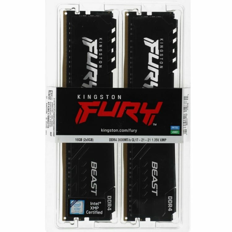 Модуль памяти KINGSTON Fury Beast DDR4 - 2x 8ГБ 3600 DIMM Ret KF436C17BBK2/16