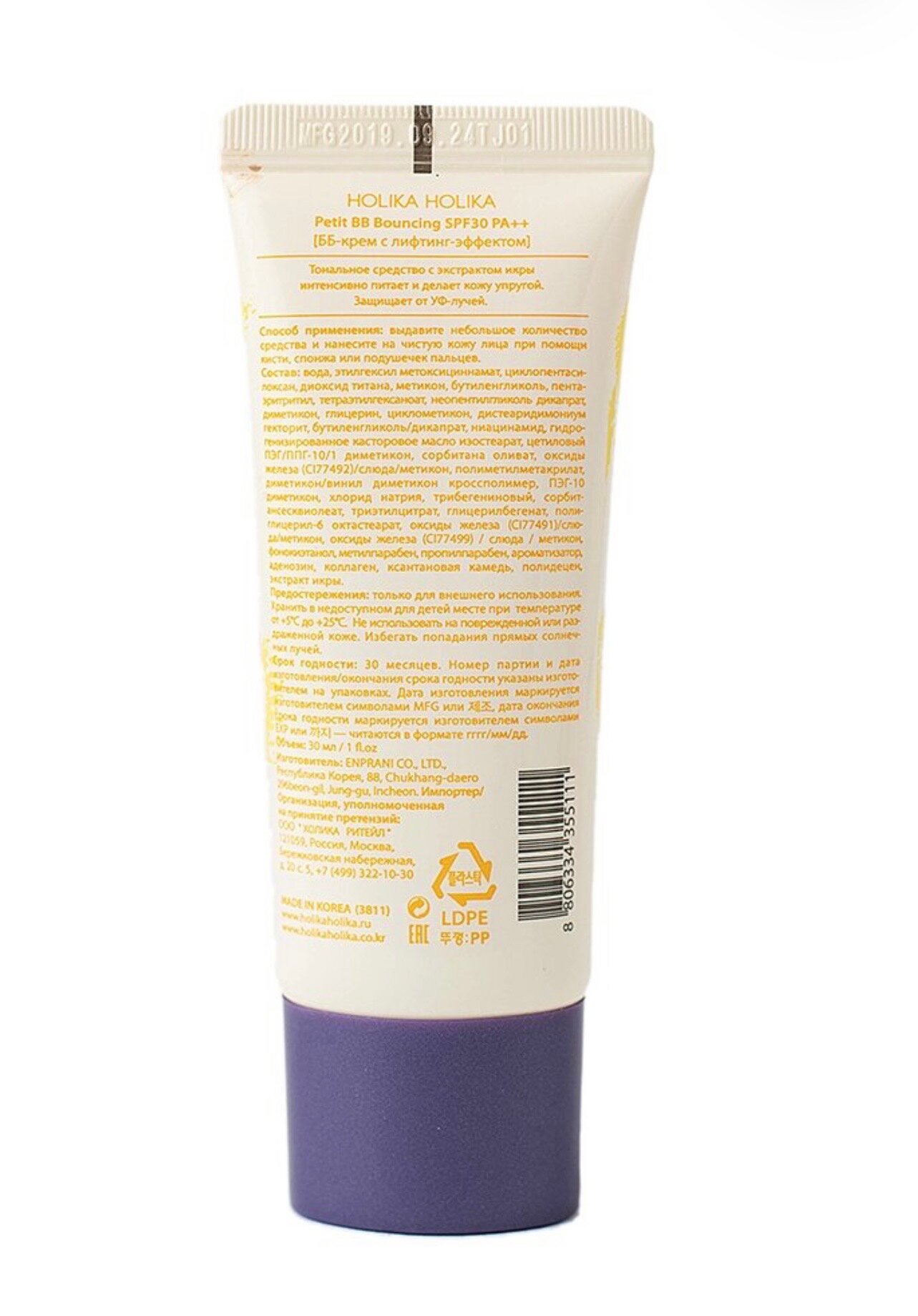 | Полное описание | Holika Holika Petit BB Bounсing AD - ББ-крем для лица, Упругость SPF30 PA, 30 мл Питательный ВВ крем с экстрактом икры и коллагеном делает кожу эластичной и обогащает ее питательными веществами. Защищает от УФ.Способ применения: Нанесите на лицо, равномерно распределите кончиками пальцев.Объем: 30 мл. |