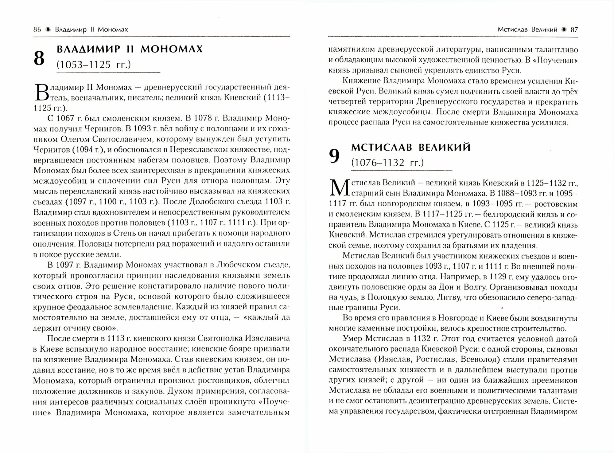 Материалы в справочнике представлены в хронологическом порядке. В них содержится информация о деятельности выдающихся личностей России.