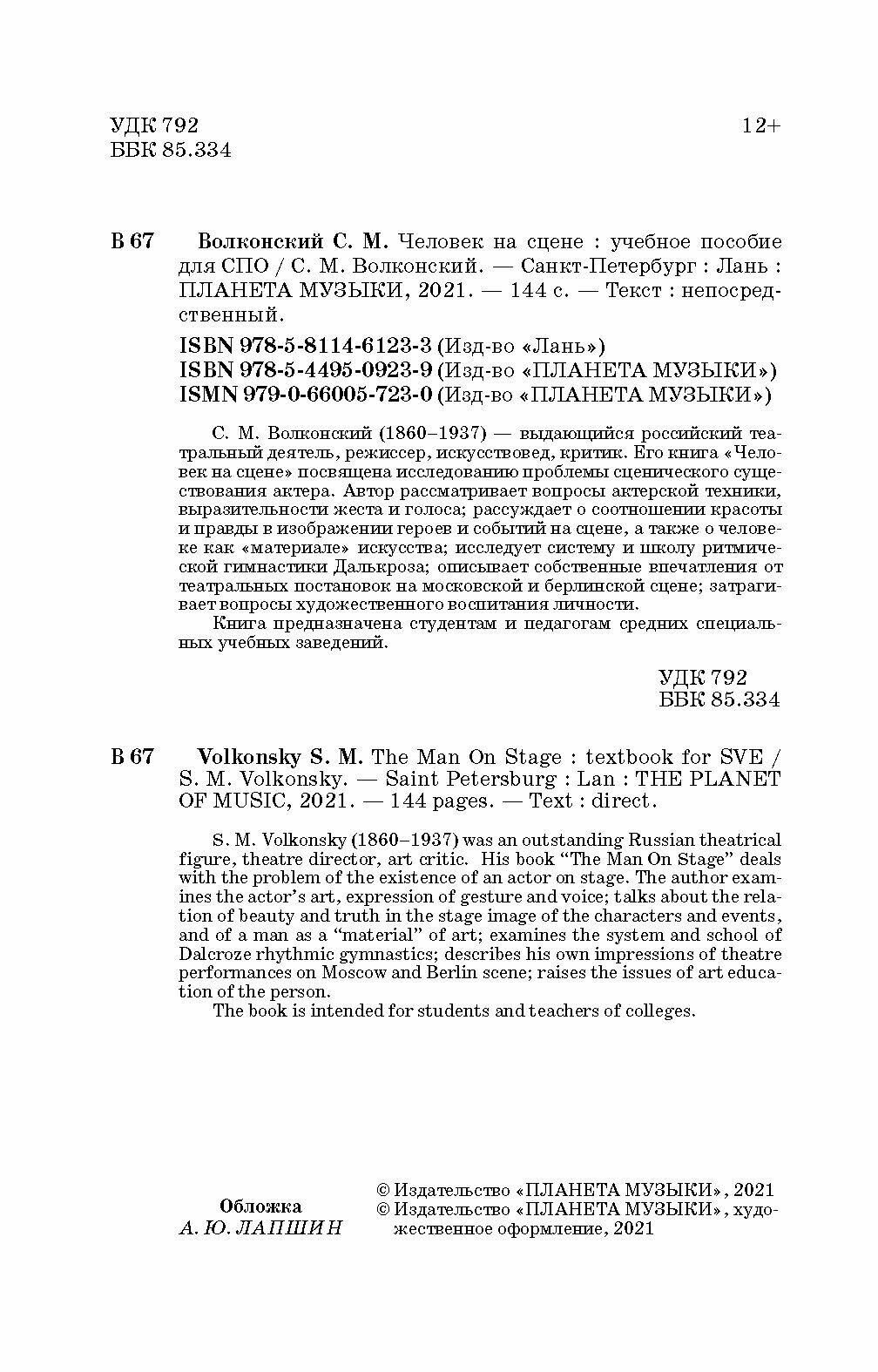 Книга: Человек на сцене (Сергей Волконский); Издательство «Планета музыки», 2022