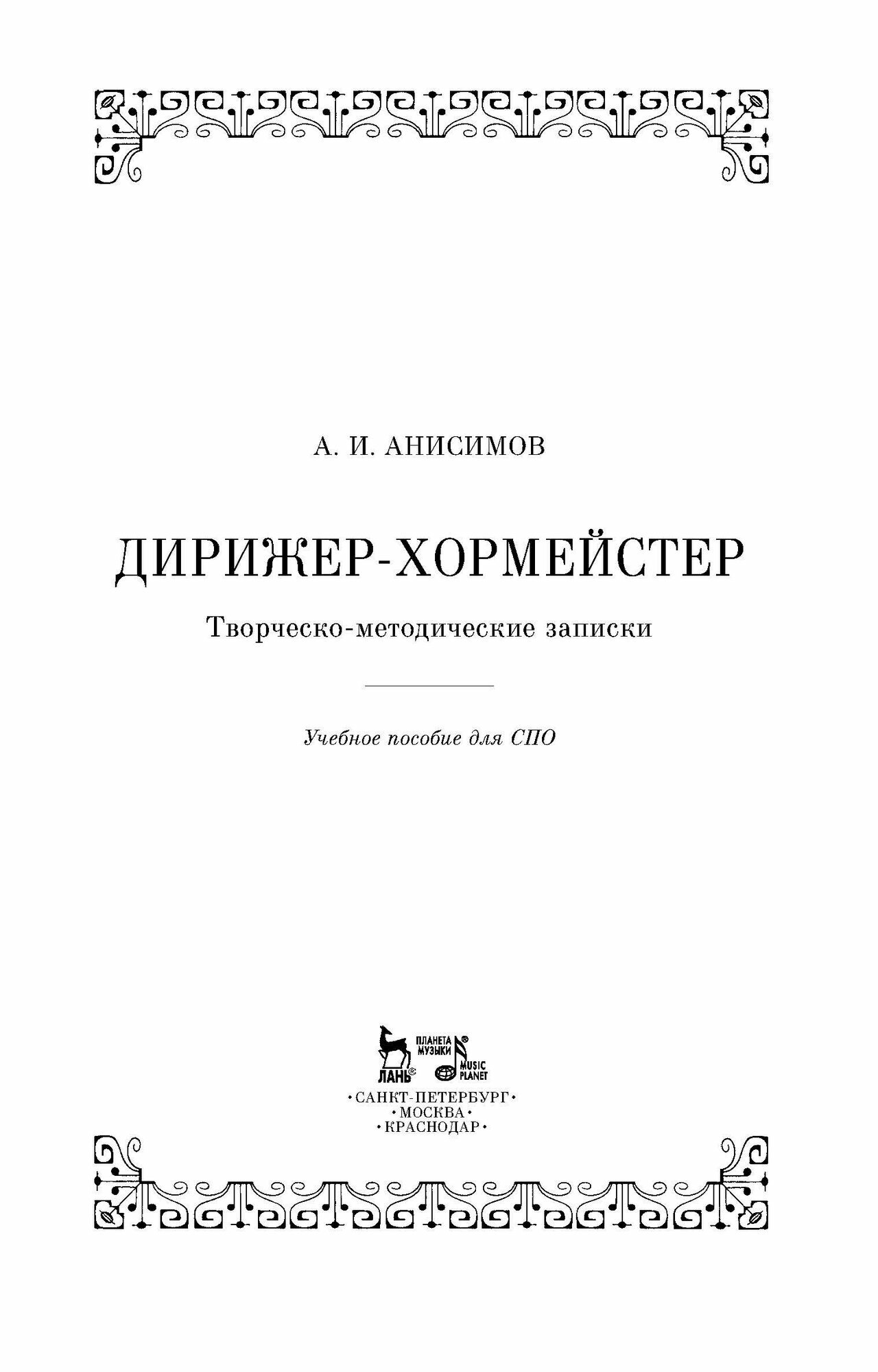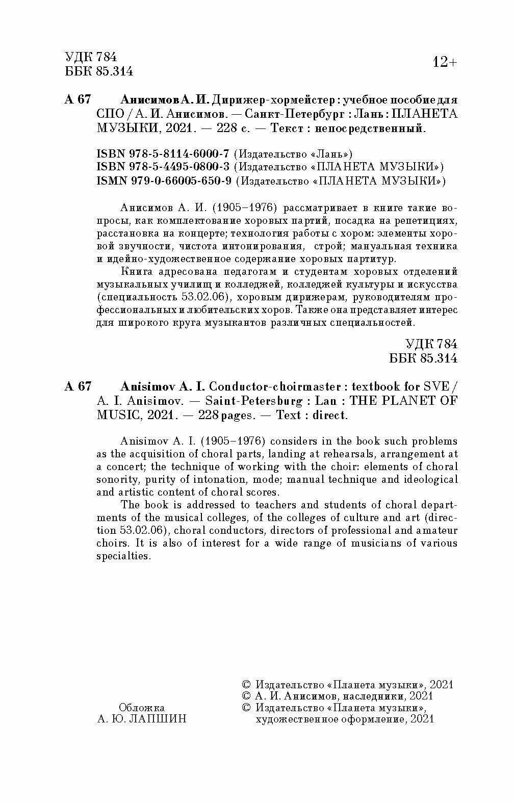 Книга: Дирижер-хормейстер (А. И. Анисимов); Издательство «Планета музыки», 2022