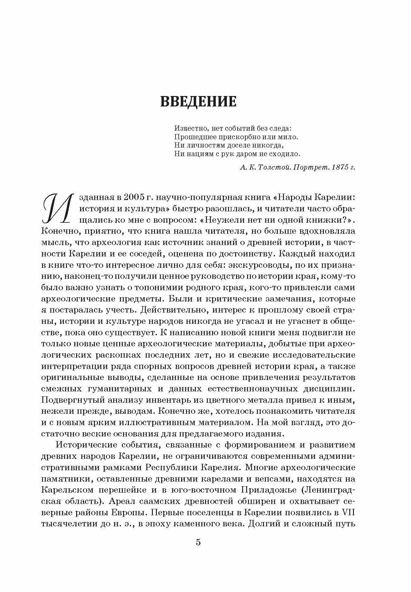 Научно-популярная книга посвящена истории и культуре народов древней Карелии: саамам, веси и кореле, прибалтийско-финскому населению Новгородской земли: води и ижоре, культурным контактам с соседями-славянами в эпоху Средневековья. Рассказывается об Олонецкой крепости XVII в., военном и административном центре в составе Русского государства. Исследование базируется в основном на археологических материалах с привлечением данных лингвистики, топонимики, антропологии, письменных источников, результатов естественнонаучных исследований.