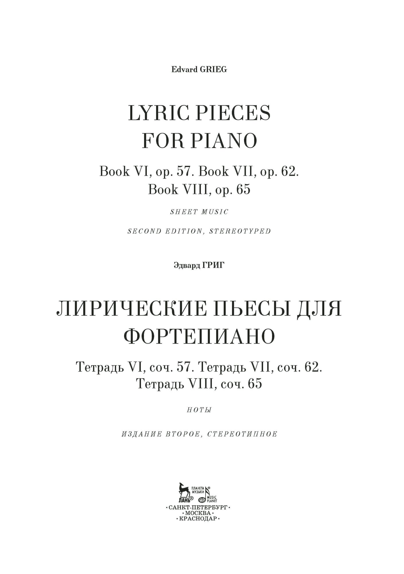 Лирические пьесы для фортепиано. Тетрадь VI соч. 57. Тетрадь VII соч. 62. Тетрадь VIII соч. 65. (Эдвард Григ); Издательство «Планета музыки», 2020