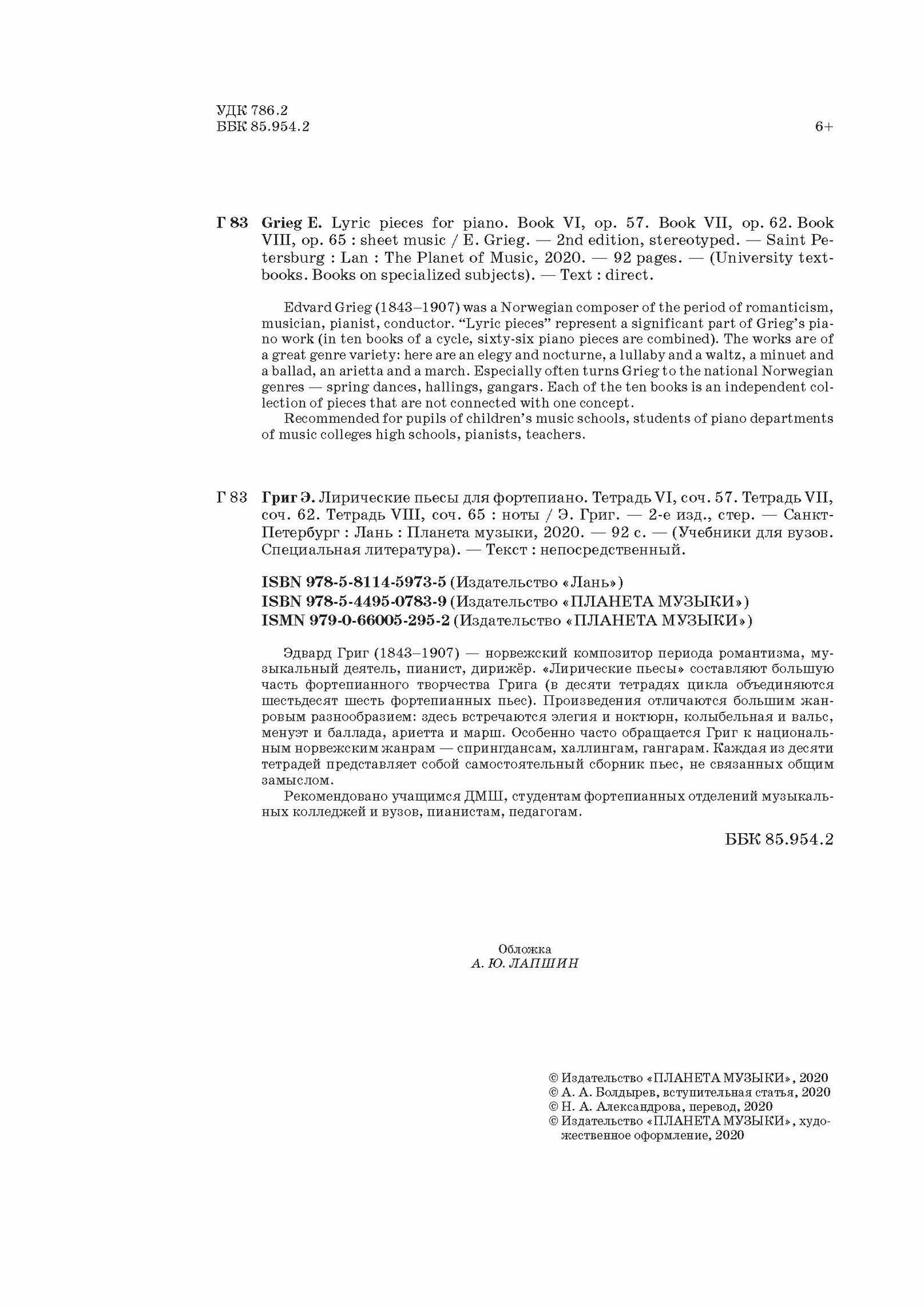 Сервис сравнения цен СкидкаГИД предлагает сравнить цены на товар «Книга: Лирические пьесы для фортепиано. Тетрадь VI соч. 57. Тетрадь VII соч. 62. Тетрадь VIII соч. 65. (Эдвард Григ); Издательство «Планета музыки», 2020»