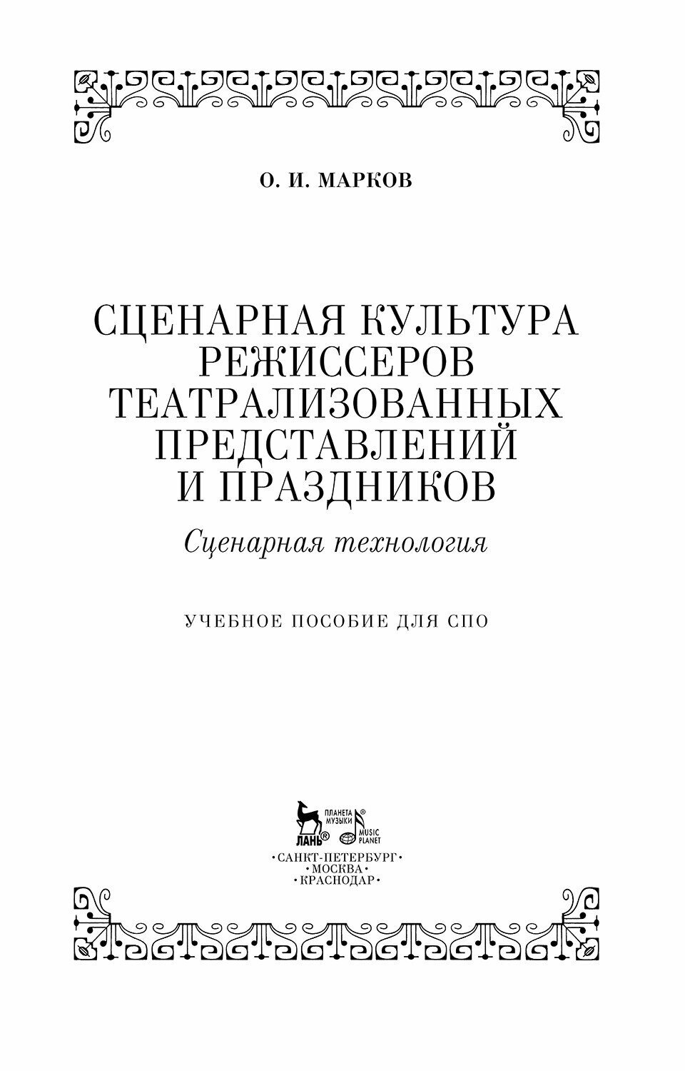 Сценарная культура режиссеров театрализованных представлений и праздников. Сценарная технология (О. И. Марков); Издательство «Планета музыки», 2022