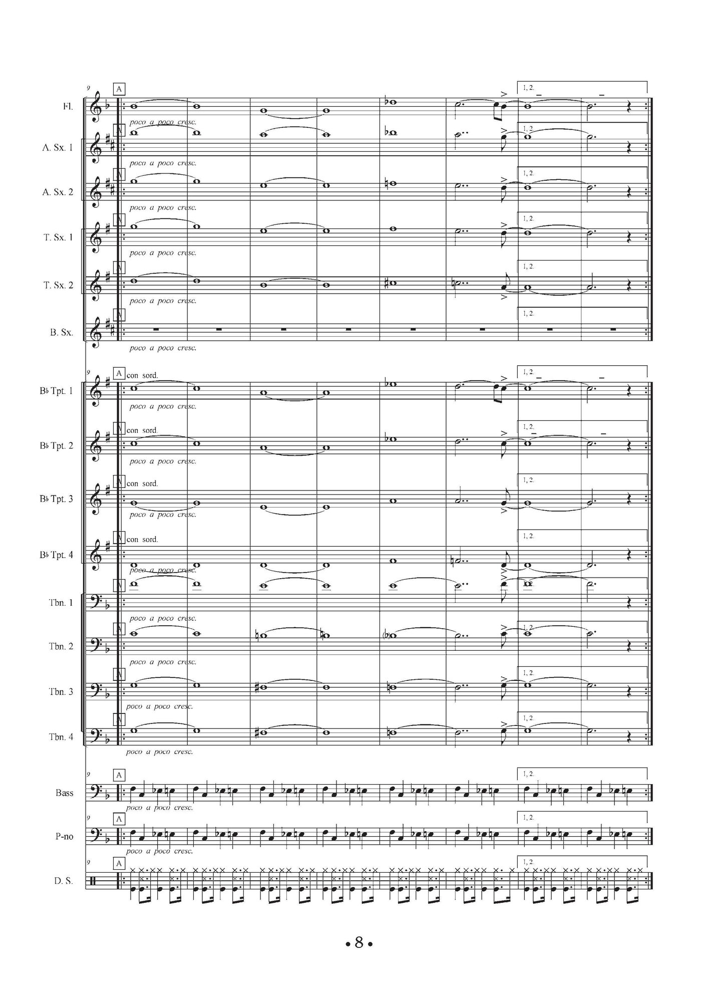Произведения автора - это новый взгляд на классический джазовый репертуар, характеризующийся свежей оркестровой палитрой и современным языком аранжировки. Сборник содержит шесть концертных пьес, написанных для джазового оркестра. Предлагаемые композиции могут быть использованы в качестве учебного и концертного материала как для профессиональных джазовых оркестров, так и для биг-бендов старших курсов музыкальных училищ и вузов.