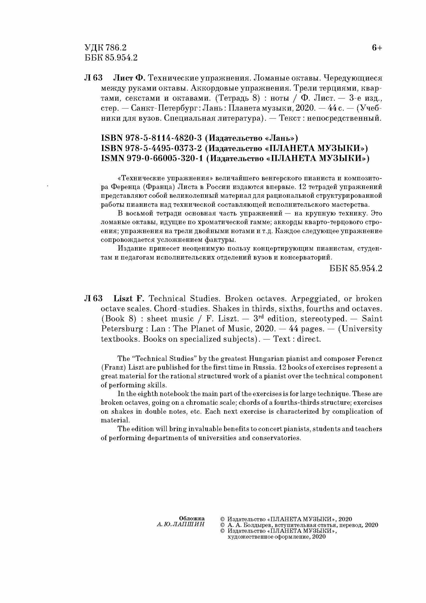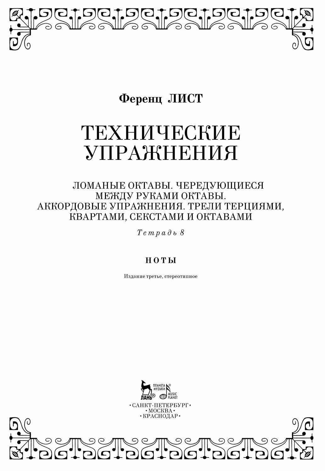 Технические упражнения. Тетрадь 8 (Ференц Лист); Издательство «Планета музыки», 2020