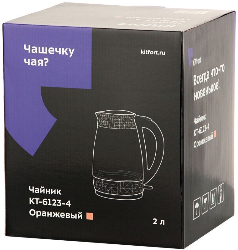 | Описание | Мощный и вместительный чайник Kitfort КТ-6123 отлично подойдёт для тёплых встреч с семьёй и друзьями. За один раз в чайнике можно вскипятить до 2л воды. Этого хватит, чтобы приготовить горячие напитки на большую семью. |