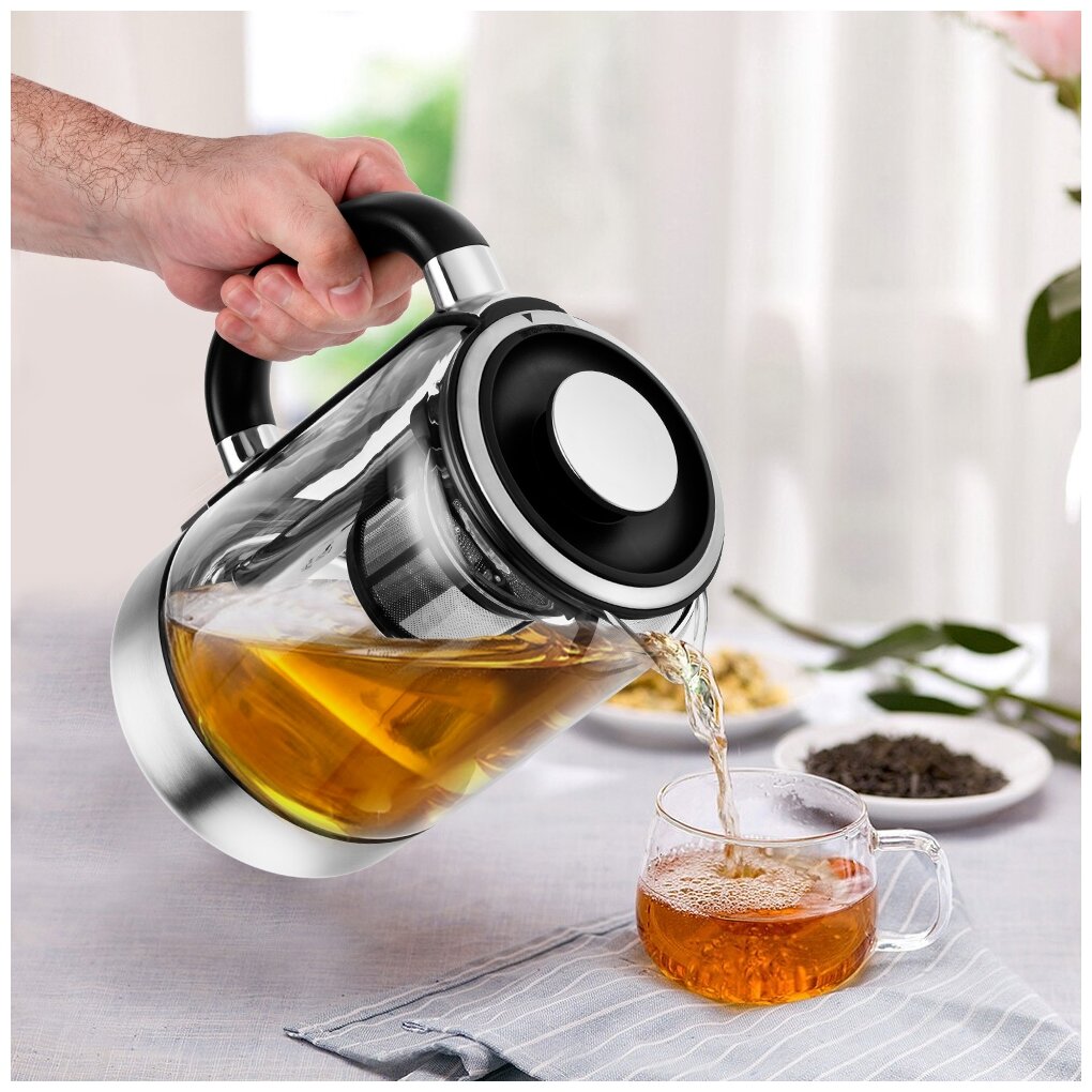 - Очень понравился чайник. Качественная пластмасса., вид чайника очень презентабельный, много функциональный. Когда завариваешь чай на этот процесс можно смотреть бесконечно, чай получается очень ароматный.