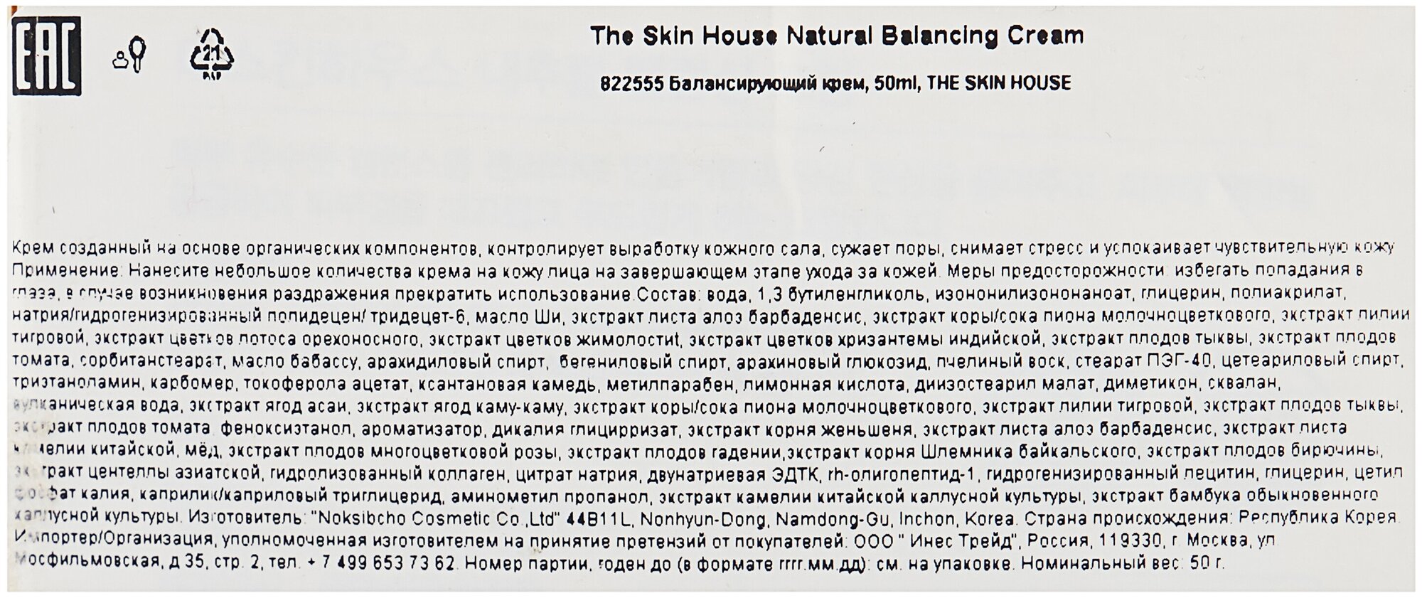На сегодняшний день товар «Крем The Skin House Балансирующий "Natural Balancing" 50 мл» можно купить с кешбеком в 1 магазине: Яндекс.Маркет
