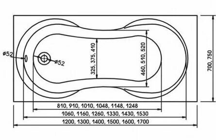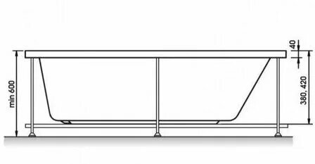 Ванна без ножек/каркаса, без фронтального экрана, без слива перелива.