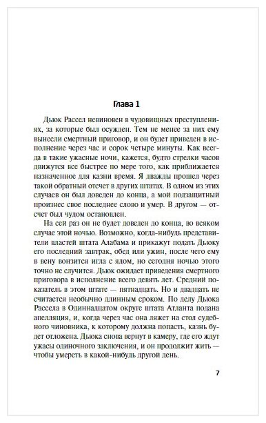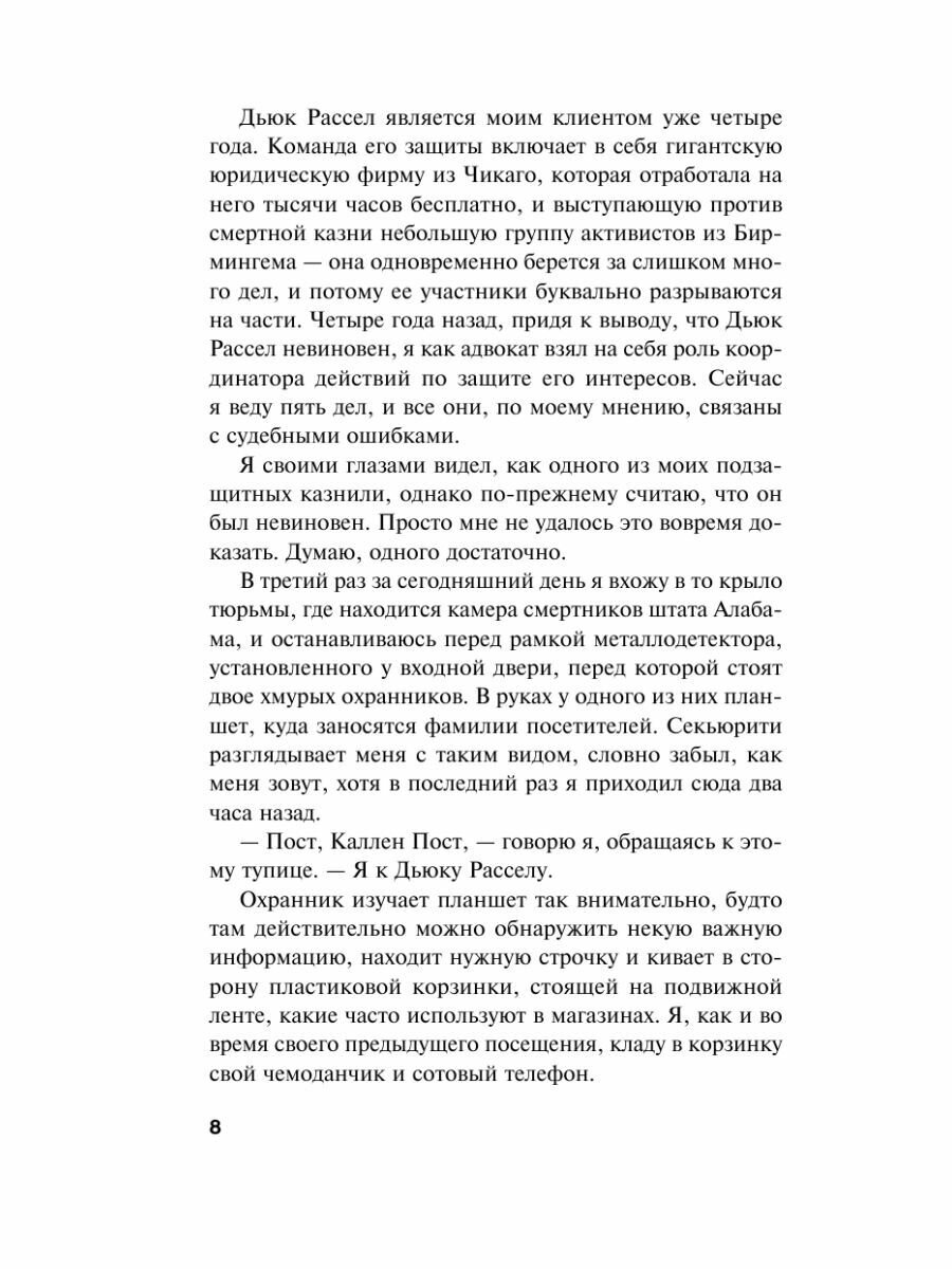 Для Джона Гришема восстановление справедливости и спасение невинных тема сквозная, эта книга не исключение. Несовершенство судебной системы обрекает на страдания, а порой и на смерть, людей, не совершавших тех поступков, в которых их признали виновными. Тысячи людей, отбывающих в тюрьмах наказание, теряя молодость, здоровье, самое жизнь, оказываясь вырванными из реальности, из судеб своих близких, из общества, которому могли бы приносить пользу.