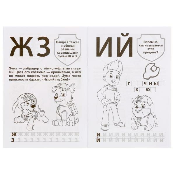 Альбом для творчества "Щенячий патруль. Настоящие спасатели" с прописями: - картинки для раскрашивания. - задания. - буквы. - прописи. В альбоме собраны интересные задания на логику и сообразительность, на развитие навыков письма, речи и внимания. Вместе с героями мультсериала "Щенячий патруль" выполнять задания будет ещё веселее. Благодаря компактным размерам раскраску удобно брать с собой в дорогу. Игровые занятия с раскраской-прописями подготавливают руку к письму и способствуют развитию: - мелкой моторики рук. - памяти. - внимания. - творческого мышления. - усидчивости.