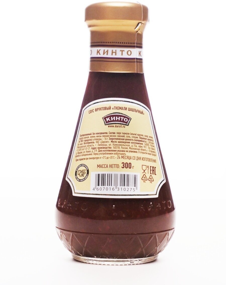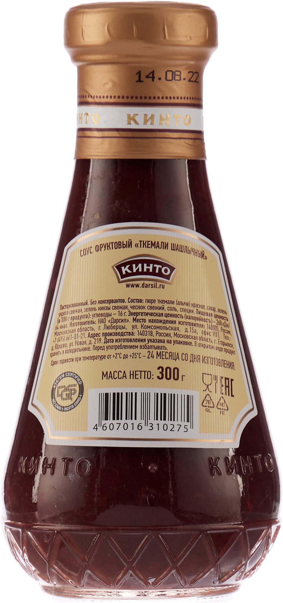 Фруктовый умеренно-острый соус Кинто Ткемали шашлычный изготовлен из красной зрелой сливы ткемали, обладает ярким вкусом и ароматом. Отлично гармонирует с блюдами, приготовленными на мангале и гриле. Не содержит ГМО, консервантов, загустителей и красителей.
