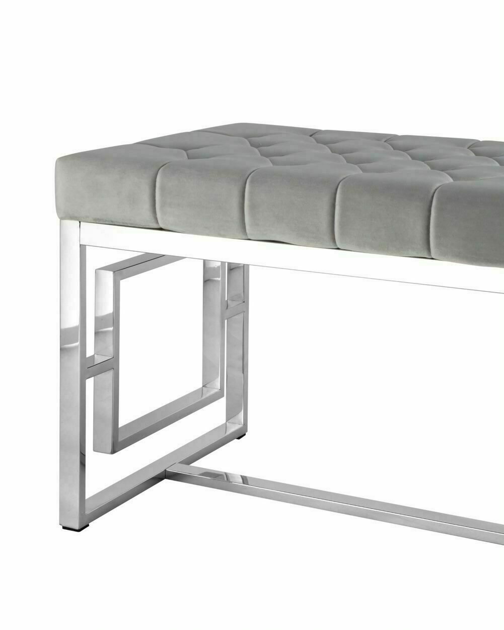 Банкетка выполнена из нержавеющей стали, что делает конструкцию прочной и надежной. Обивка сиденья - велюр. Материал обладает особой прочностью и износоустойчивостью, приятный на ощупь, эластичный и теплый.
