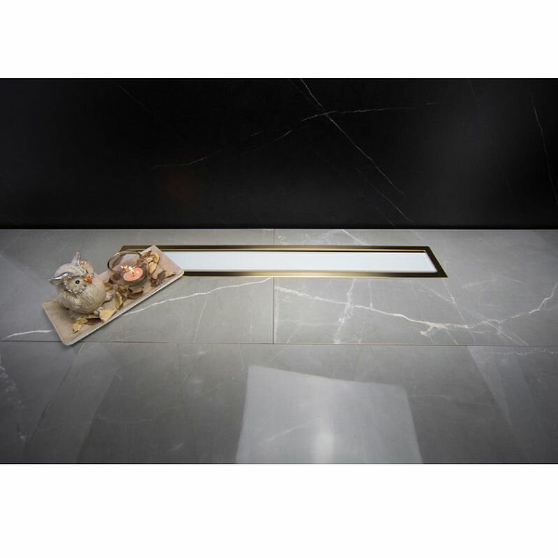 Душевой лоток Pestan Confluo Premium Line 950 White Glass Gold 13100126 с решеткой Белый глянцевый Золото глянцевое