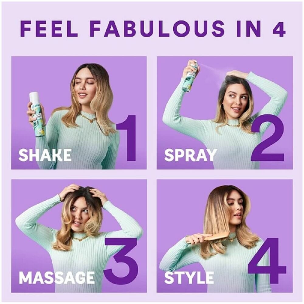 Batiste Blush- сухой шампунь для волос с цветочным ароматом, для быстрого придания свежести, объема и структурности. Его действие аналогично обычному шампуню, а приятный аромат привлекает внимание. Основные ноты - пион, фрезия и апельсиновая кожура. Спрей подойдет для всех типов волос – натуральных, окрашенных, коротких или длинных, седых, осветленных, сухих, жирных, тонких или вьющихся, поврежденных и ослабленных.