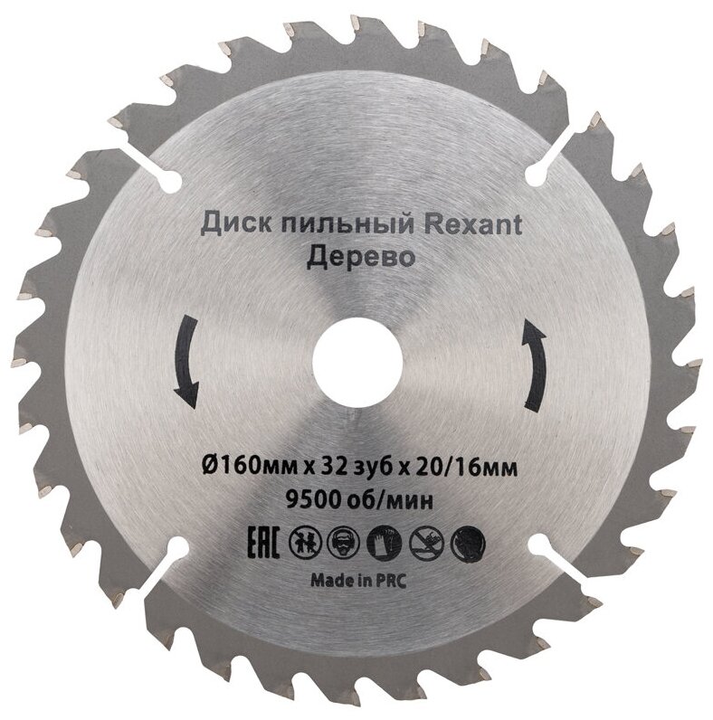 Пильный круг REXANT применяется для обработки древесины, алюминия, пластика, ДСП и МДФ, позволяет создавать пазы при пилении вдоль оси вращения диска. Оснастка подходит для большинства угловых шлифовальных машин (УШМ) со стандартным посадочным отверстием 20/16 мм, циркулярных и торцовочных пил. Зубья диска имеют переменный наклон, выполнены из карбида вольфрама: благодаря материалу высокой прочности обладают повышенным ресурсом работы, устойчивы к большим нагрузкам. Точная форма оснастки и специальные компенсационные зоны обеспечивают комфортную работу без «биения» вдоль оси. Диск соответствует стандарту высококачественной профессиональной оснастки, гарантирует качество и точность реза. Диаметр 160 мм, 32 зуба, ширина пропила 2.4 мм. Скорость вращения - 9500 оборотов в минуту.