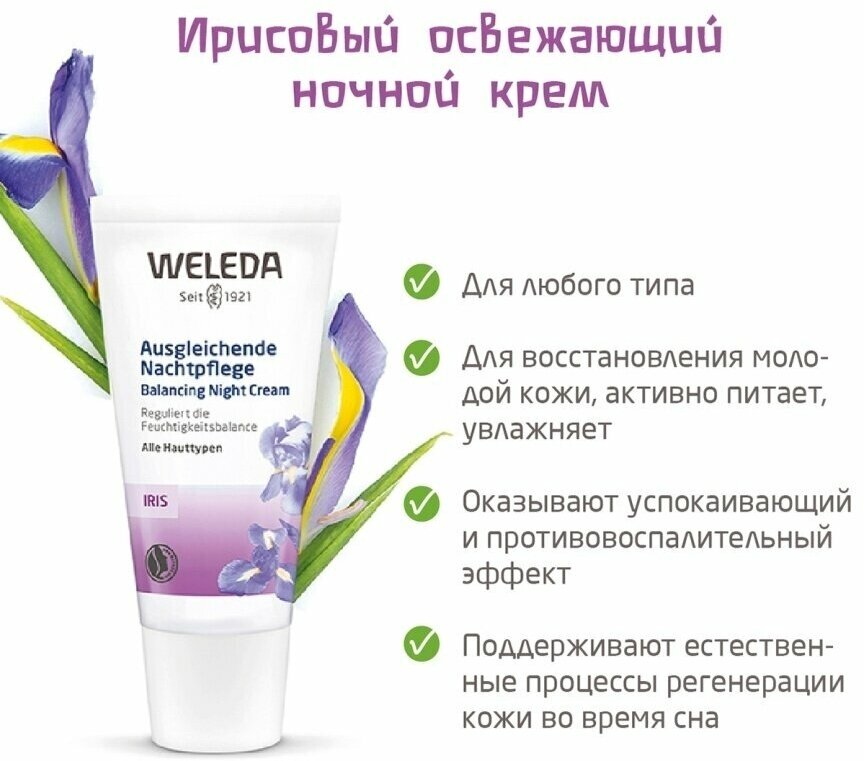 - ИРИСОВЫЙ ОСВЕЖАЮЩИЙ НОЧНОЙ КРЕМ-УХОД WELEDA (Iris Erfrischende Nachtpflege)