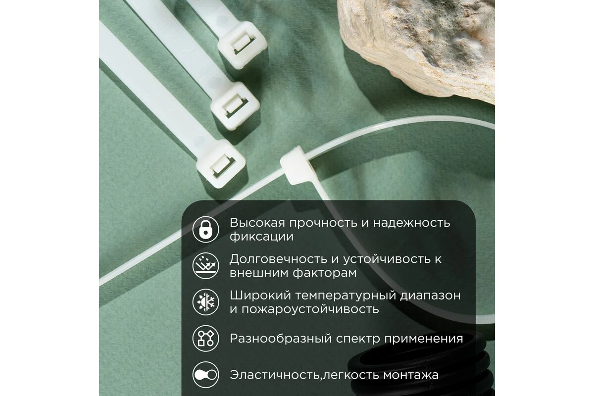 Хомут нейлоновый (кабельная стяжка) «Тройной замок» предназначен для крепления или обвязки в жгут кабелей и проводов, крепления гибких гофротруб, а также других предметов к несущей поверхности или для соединения между собой. Используется при проведении электромонтажных работ, при монтаже структурированных кабельных систем, для бытовых нужд, а также в других отраслях народного хозяйства.