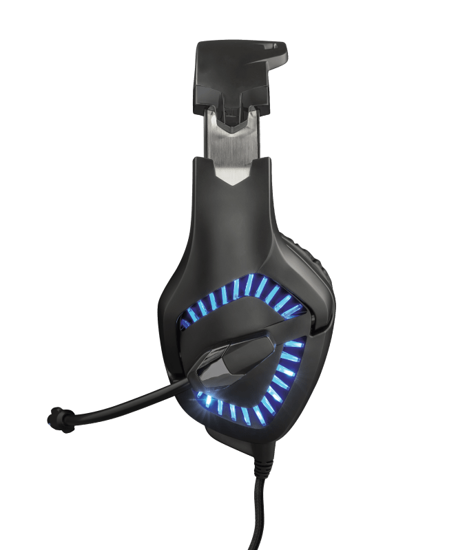 Гарнитура Trust GXT460 VARZZ с подсветкой, сочетающая в себе лучший звук, комфорт и легкость, делает игры еще более захватывающими. В сочетании с набором функций, которые нельзя упустить, эта игровая гарнитура поднимет ваш игровой опыт на новый уровень.Придайте своей игре прочную звуковую основу с помощью 50-миллиметровых динамиков с отличным звуком. Богатый и мощный звук делает ваши игровые сессии более захватывающими, а кристально чистое общение способствует многим победам. VARZZ обязательно станет привлекательным дополнением к вашей игровой системе. Голубые световые круги по бокам наушников и на микрофоне помогут осветить комнату и осветить игровой процесс. У вас есть звук, есть свет, и теперь вам нужен функциональный контроль. У нас есть кое-что для этого. Например, усиленное металлическое регулируемое оголовье и встроенный пульт дистанционного управления с регулятором громкости и отключением микрофона. Добавьте к этому удлиненный плетеный кабель, и вы получите несколько действительно полезных характеристик, которые делают VARZZ очень функциональной игровой гарнитурой. Начните свою игру и забудьте обо всем остальном - гарнитура Trust GXT460 VARZZ с подсветкой создана, чтобы быть удобной в течение нескольких часов. Его амбушюры большие и мягкие, они будут сидеть на голове, как перчатка, даже когда один час превращается во всю ночь.