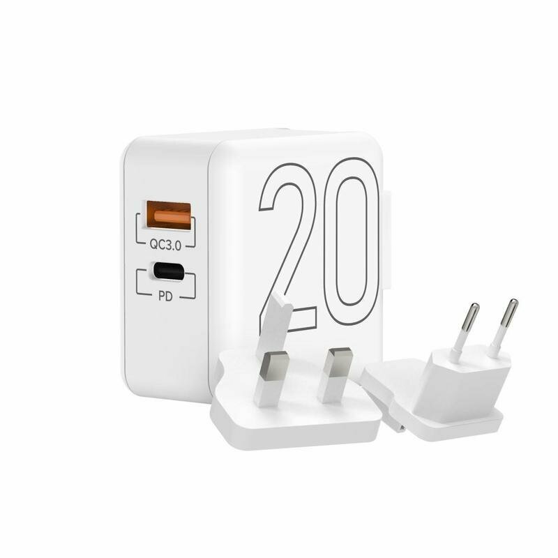 Эргономичный дизайн и компактные размеры СЗУ. В комплекте к зарядке две сменные насадки - переходники для UK и EU стандартов розеток.
