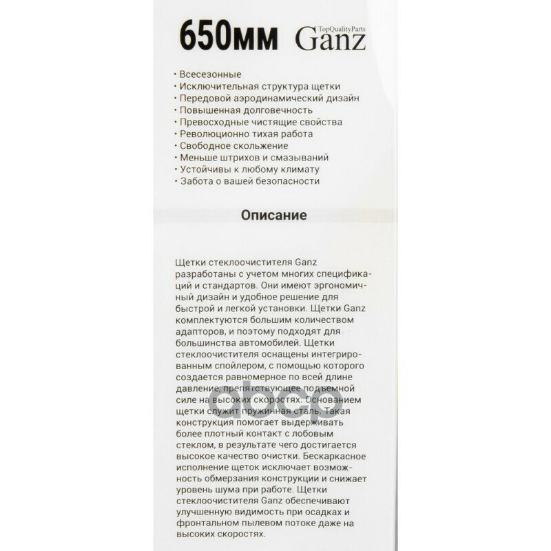 Щетки стеклоочистителя GANZ обеспечивают отличную видимость и безопасность вождения в самых сложных погодных условиях.