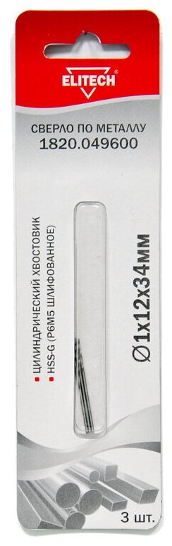 Сверло по металлу ELITECH 1820.04960 1 мм 3 шт
