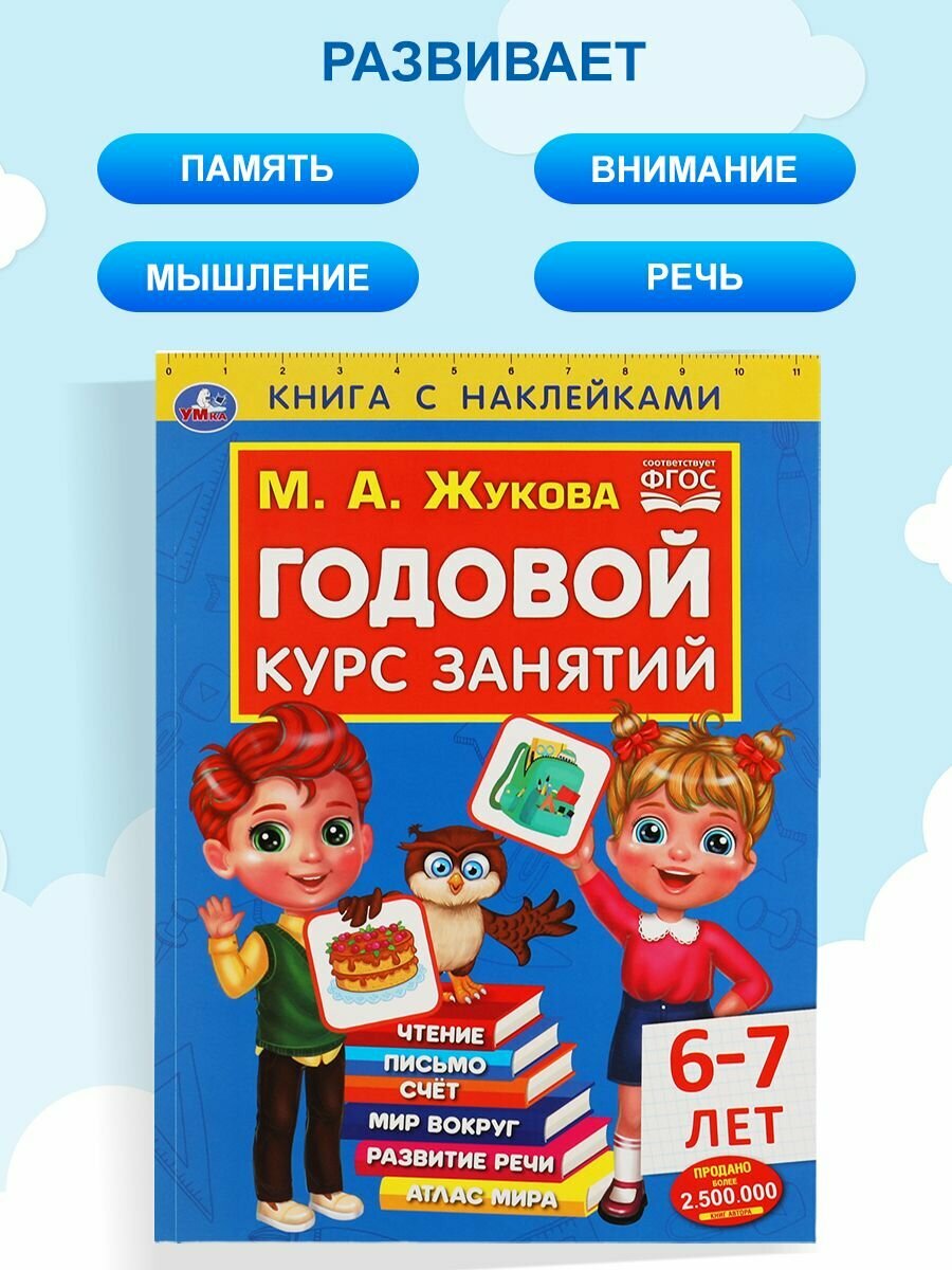 Книга с наклейками «М. А. Жукова. Годовой курс занятий, 6-7 лет» ТМ «УМка» – интересное обучающее пособие для маленьких любознаек:
