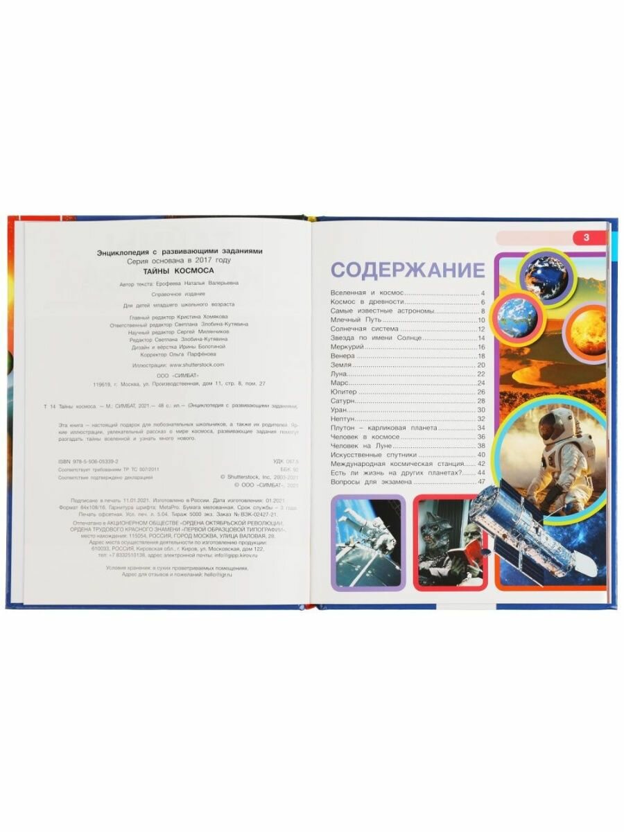 Тайны Космоса. Энциклопедия А4 С Развивающими Заданиями. (Хомякова К.); Умка, 2021