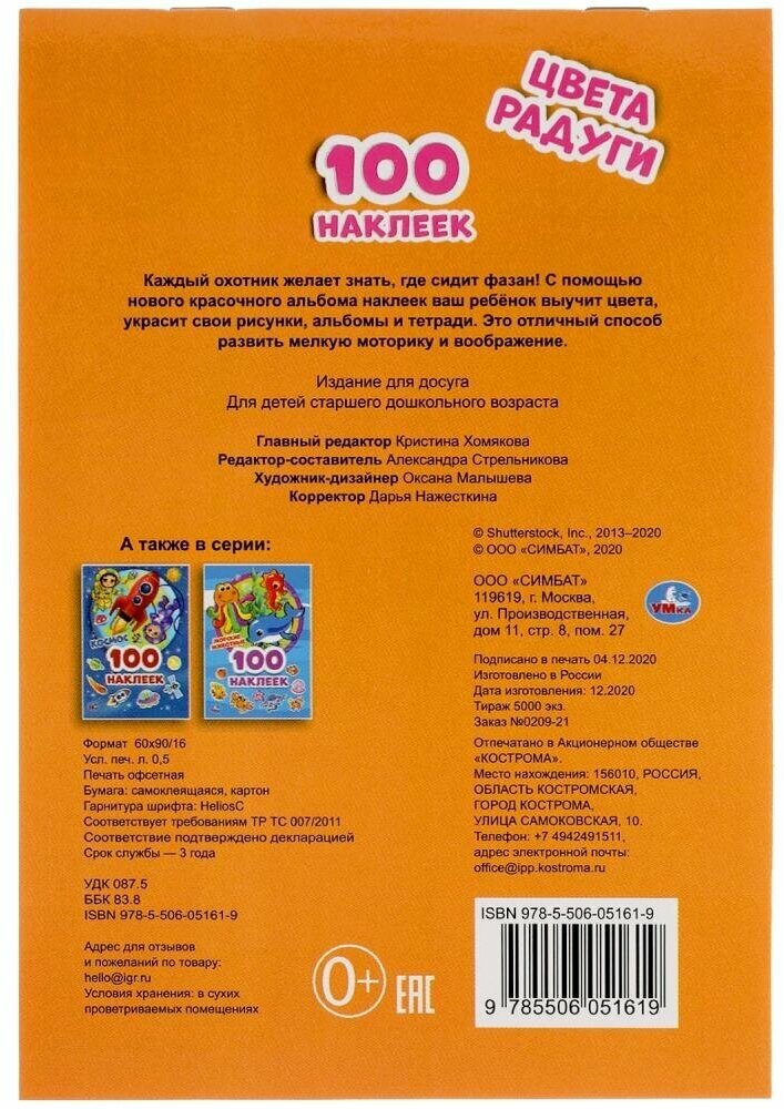 Цвета радуги 100 наклеек. 145х210мм. 4 стр. наклеек. Умка в кор.50шт (Стрельникова А. - редактор-составитель); Умка, 2022