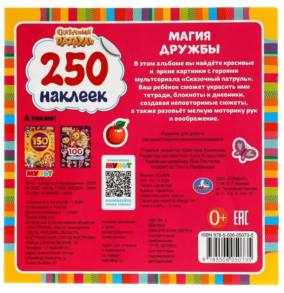 Сервис сравнения цен СкидкаГИД предлагает сравнить цены на товар «Книга: Магия Дружбы. Сказочный Патруль. 250 Наклеек. 210Х207 Мм. 4 Стр. (Кларштейн А. - редактор-составитель); Умка, 2021»