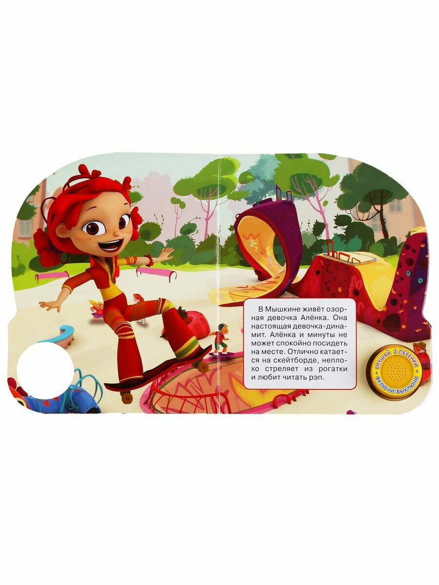 Ребёнок с удовольствием будет листать плотные страницы, рассматривать красочные картинки, читать вместе с родителями про любимых персонажей мультика, а также нажимать на кнопки и слушать весёлые песенки. Малыш легко освоит включение звука: по нажатию на кнопку песенка включится, при втором нажатии выключится. Благодаря компактному формату книгу удобно взять с собой в дорогу.