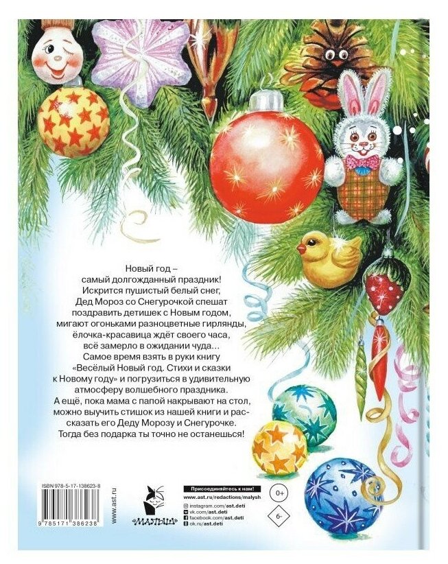 Весёлый Новый год. Стихи и сказки к Новому году (Барто Агния Львовна, Чуковский Корней Иванович, Маршак Самуил Яковлевич); Малыш, 2021
