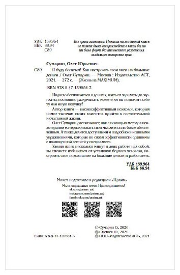 Я буду богатым! Как настроить свой мозг на большие деньги (Олег Сумарин); Издательство АСТ, 2021