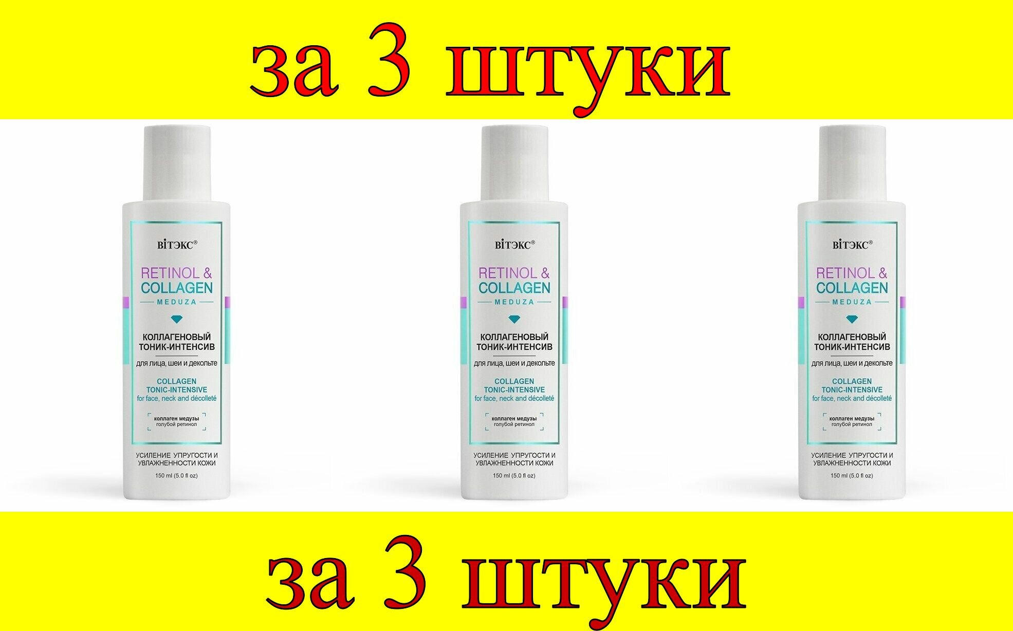 На сегодняшний день товар «Тоник-интенсив для лица шеи и декольте коллагеновый Retinol&Collagen Meduza Витэкс 150мл Витэкс ЗАО (502566)» можно купить с кешбеком в 1 магазине: Яндекс.Маркет