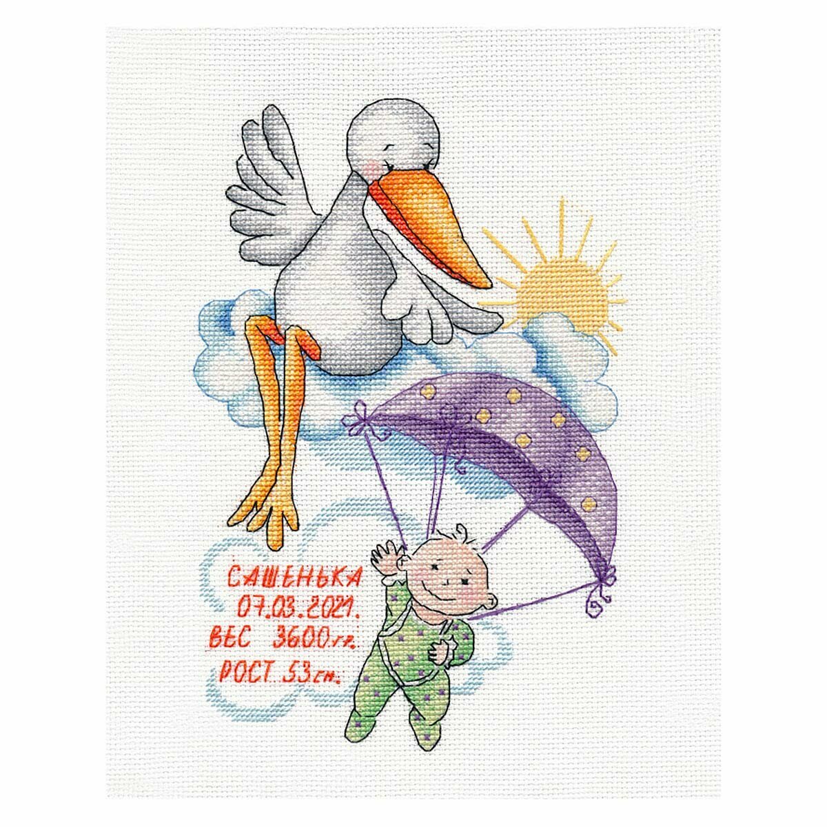 | Комплектация | Канва Aida 14 ct белая, мулине ПНК им.Кирова хлопковое, игла, схема, инструкция. |