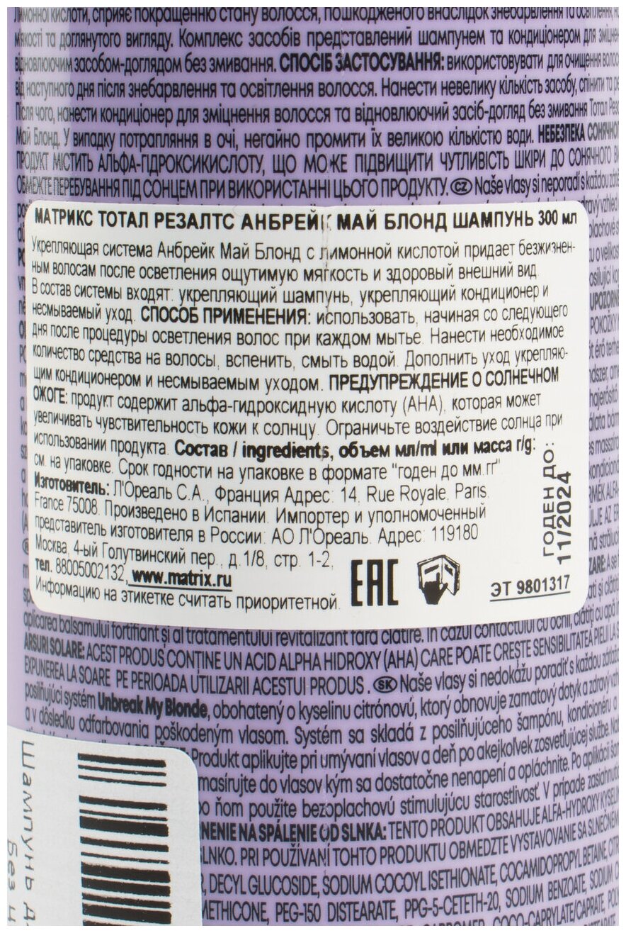 Matrix Шампунь без сульфатов Unbreak my blond 300 мл (Matrix ) Total results