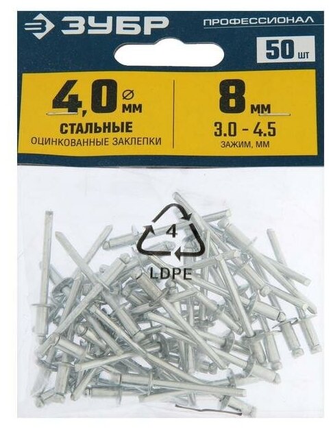 ЗУБР 4.0 х 8 мм, алюминиевые заклепки, 1000 шт, Профессионал (31310-40-08)