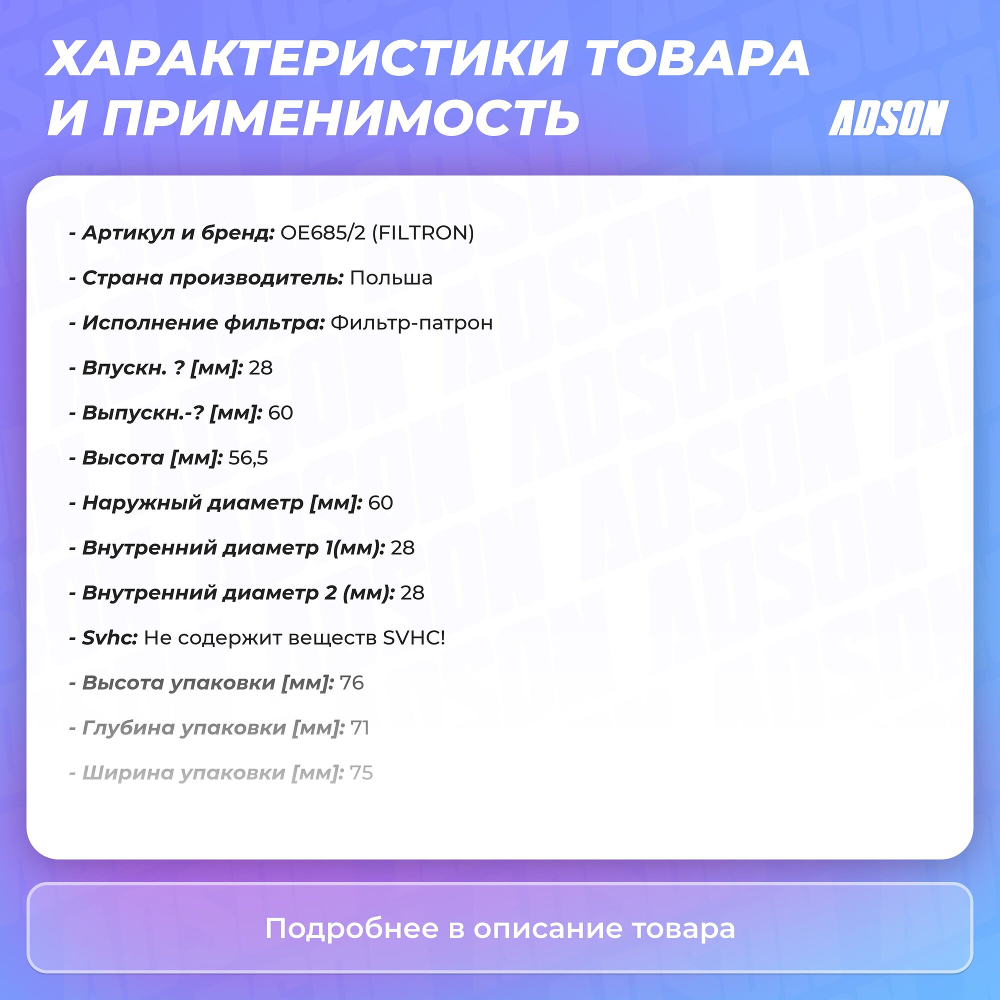 - Заменитель для 04152YZZA6. filtron oe685/2