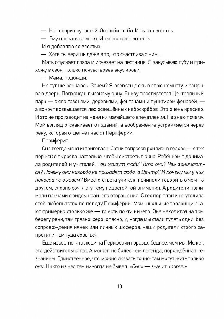 Обычный вечер с друзьями оборачивается для семнадцатилетней Милы Хант сущим кошмаром: обвинение в убийстве, шантаж, похищение спецслужбами... Теперь девушка вынуждена работать на секретную организацию. Выбора нет: служить целям правительства — или подставить друга и оказаться в тюрьме. Привычный город, разделённый на благополучный Центр и закрытую от остальных жителей Периферию, раскрывается перед Милой с другой стороны. Опасность здесь подстерегает на каждом шагу, а реальность оказывается удивительнее самых смелых домыслов.