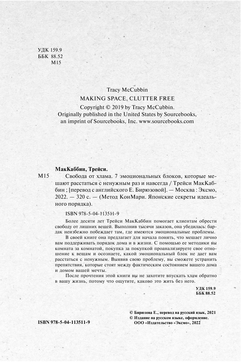 Свобода от хлама. 7 эмоциональных блоков которые мешают расстаться с ненужным раз и навсегда (Трейси МакКаббин); Эксмо, БОМБОРА, 2021