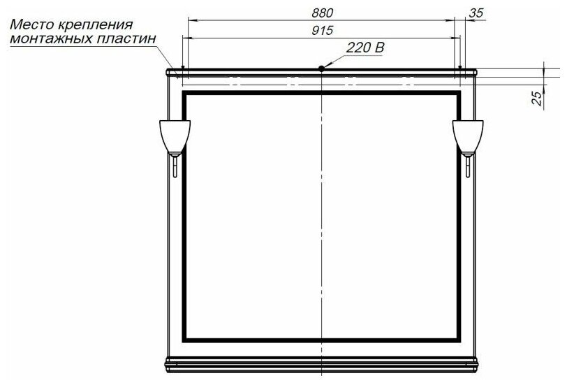 Зеркало в белой раме с небольшой полочкой внизу для самого необходимого. Радует глаз благородной простотой.