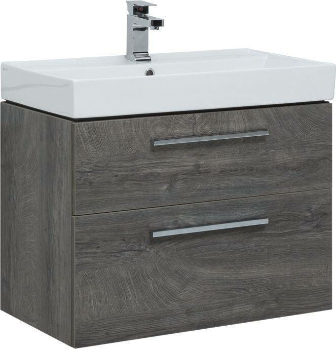 Тумба: Aquanet Nova 75, цвет дуб рошелье, 2 выдвижных ящика. Не забудьте заказать раковину и зеркало (смотрите дополнительную комплектацию и опции).