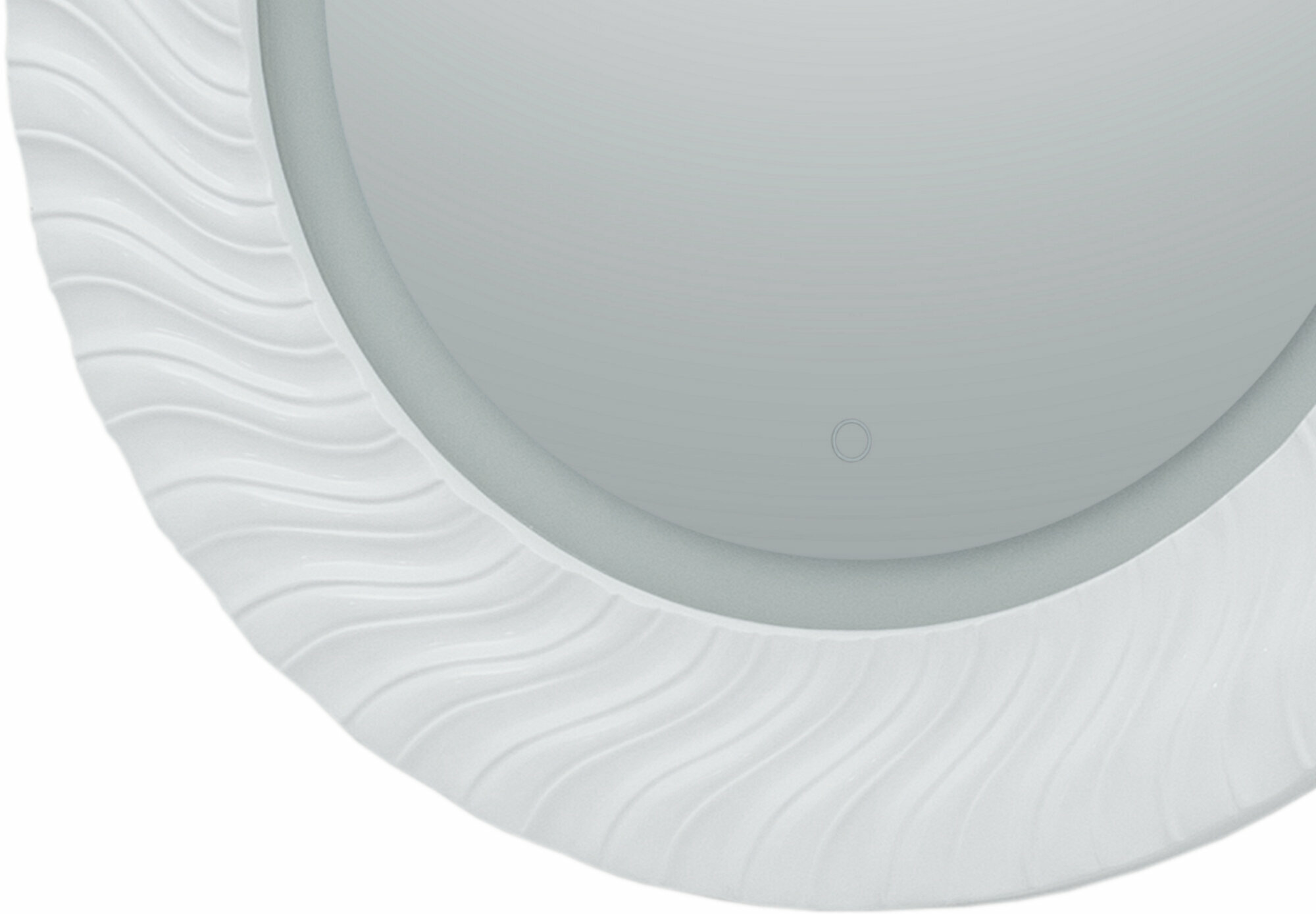 Круглое зеркало «Милан» в декоративной раме станет настоящим украшением ванной комнаты. Оно обладает характерными чертами стиля ар-деко. По широкой раме словно стилизованные солнечные лучи проходит искусная фрезеровка, изысканность которой подчеркнута белым глянцевым покрытием.