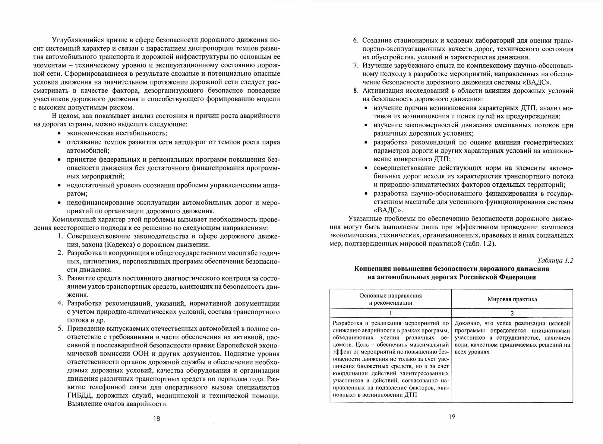 Рассмотрены основные понятия, определяющие безопасность функционирования транспортных сооружений и дорожного движения. Особое внимание уделено обобщению методов оценки безопасности транспортных сооружений, параметрам и характеристикам дорог, влияющим на удобство и комфортабельность движения. Даны практические рекомендации по использованию основных технических средств и их назначению при разработке проектов организации дорожного движения, а также сформулированы задачи дорожной службы по обеспечению безопасности дорожного движения.