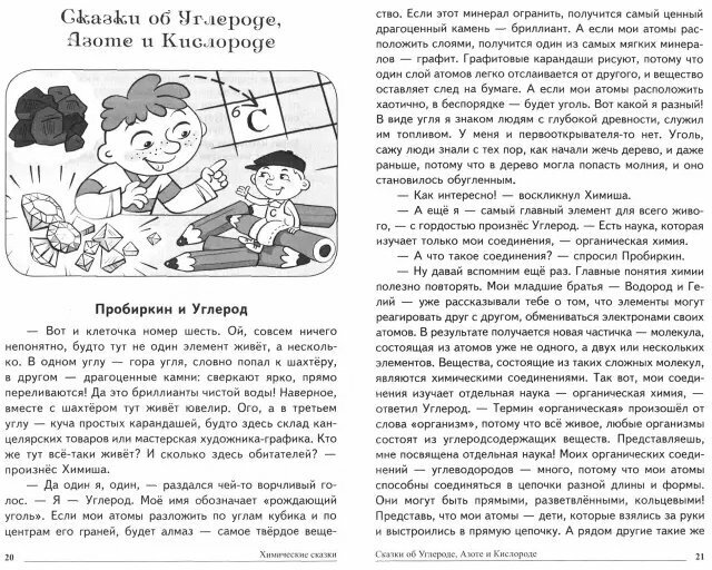 В книге представлены авторские сказки, рассказы и стихотворения о химических элементах, способствующие пробуждению познавательного интереса, любознательности, развитию фантазии, логического мышления и памяти.