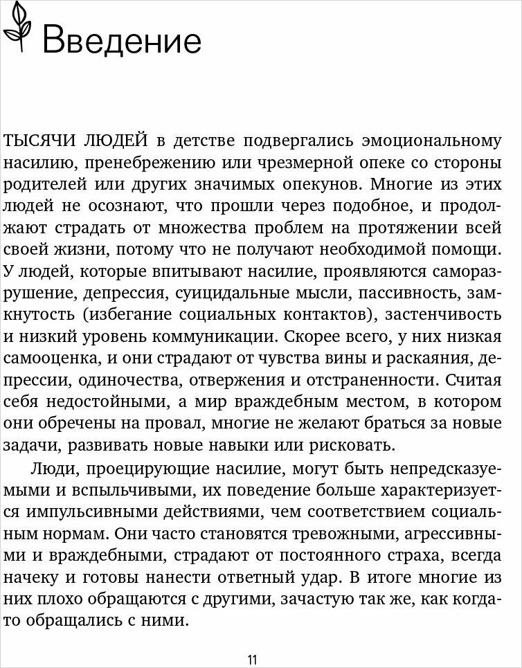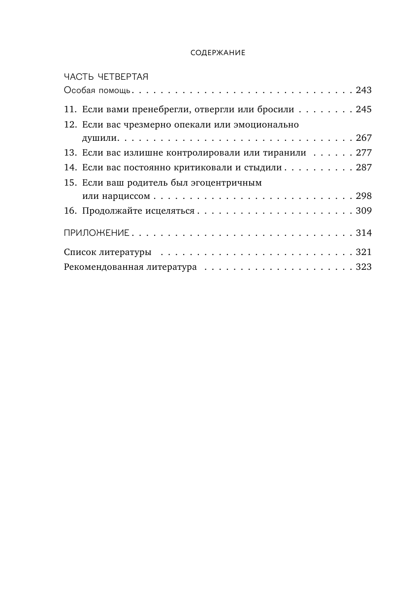 лучшая покупка этой осени. влияние установок, заложенных родителями, я начала осознавать довольно поздно, с помощью психотерапевта. терапия на многое мне открыла глаза, и продолжает помогать в самопознании и корректировке вредных сценариев. но книга Беверли Энгл помогла найти новые смыслы в моей работе с психологом. в книге очень подробно и в доступной форме рассказывается о травмах, которые вы могли пережить в детстве, меня немного даже шандарахнуло от осознания, каким зеркалом являлась моя мать. практические упражнения помогают проработать травму, найти путь к исцелению. буду дополнительно обсуждать проделанную работу на терапии - но думаю, многим книга может оказаться полезной сама по себе, поэтому и пишу этот отзыв.