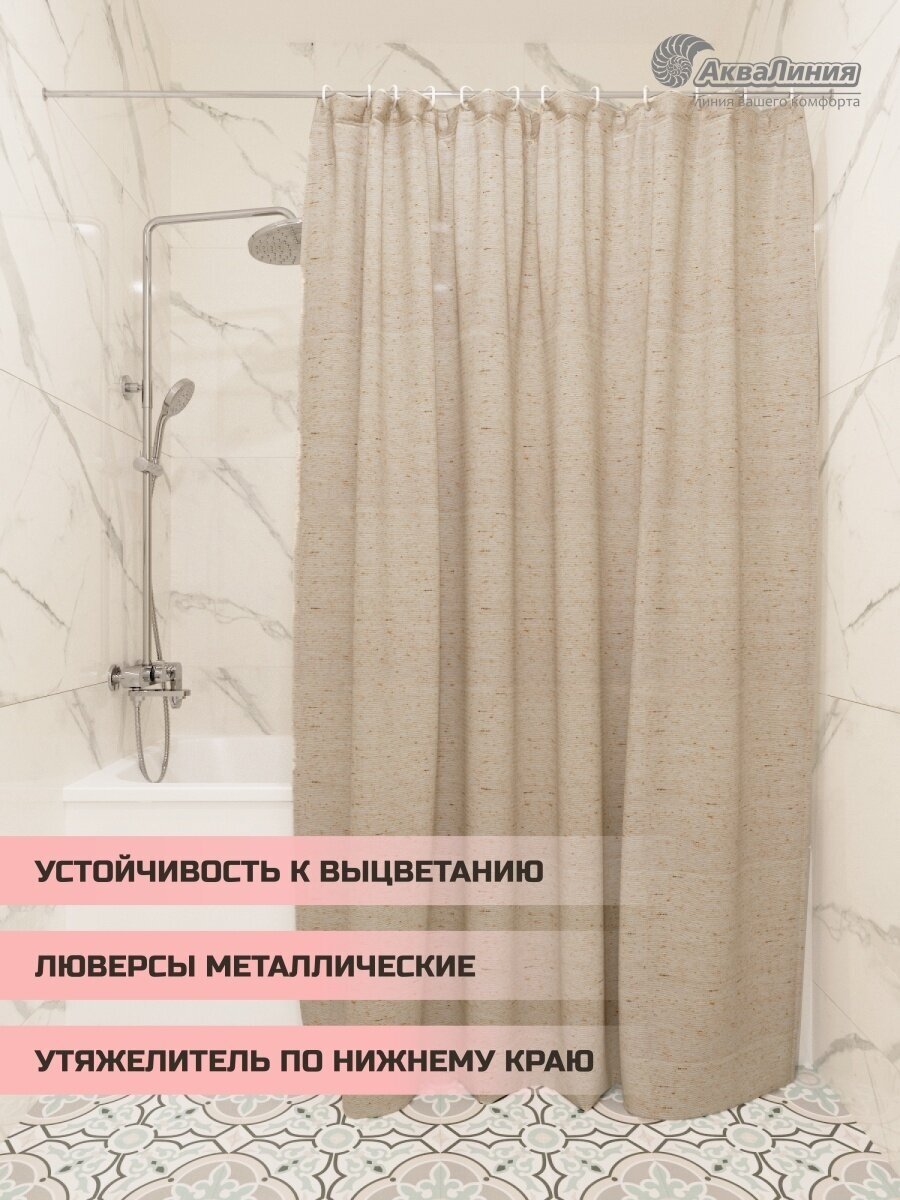 Штора для ванной SC9601A Лён Бежевая 18*20 Hoff (размер: 180x200 см)
